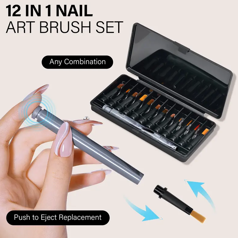 Package Includes: 1×12 PCS Multi-Functional Nail Art Brush Set