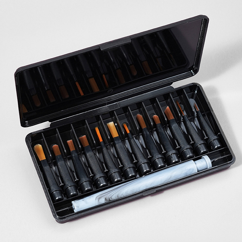 TRAVEL-READY ORGANIZATION – Comes in a sleek 13cm case that keeps brushes separated and protected. The durable bristles maintain their shape wash after wash, resisting solvent damage from acetone or cleansers.