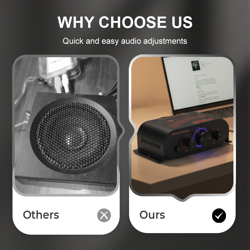 BROAD COMPATIBILITY - Seamlessly connect a wide range of audio sources, including mobile phones, personal computers, and MP3 players. The amplifier provides standard input options, ensuring it integrates effortlessly with your existing media devices to amplify their audio output without complex setups.