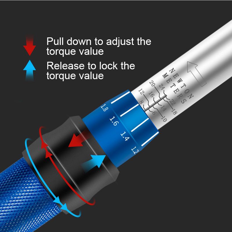 When the wrench's preset torque value is reached, a simple and reliable mechanical operation inside the handle produces a click you can hear and feel, alerting you to stop applying force.