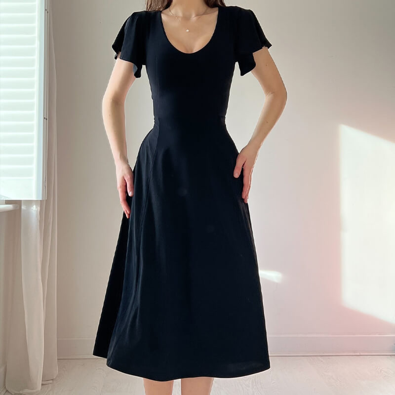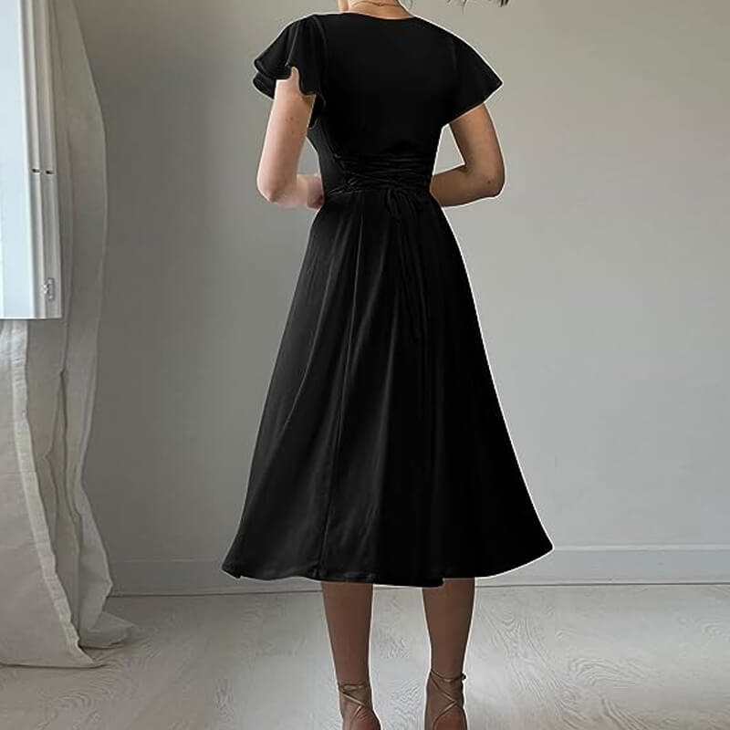 The skirt has a flounce hemline that adds a feminine touch and creates a graceful look.