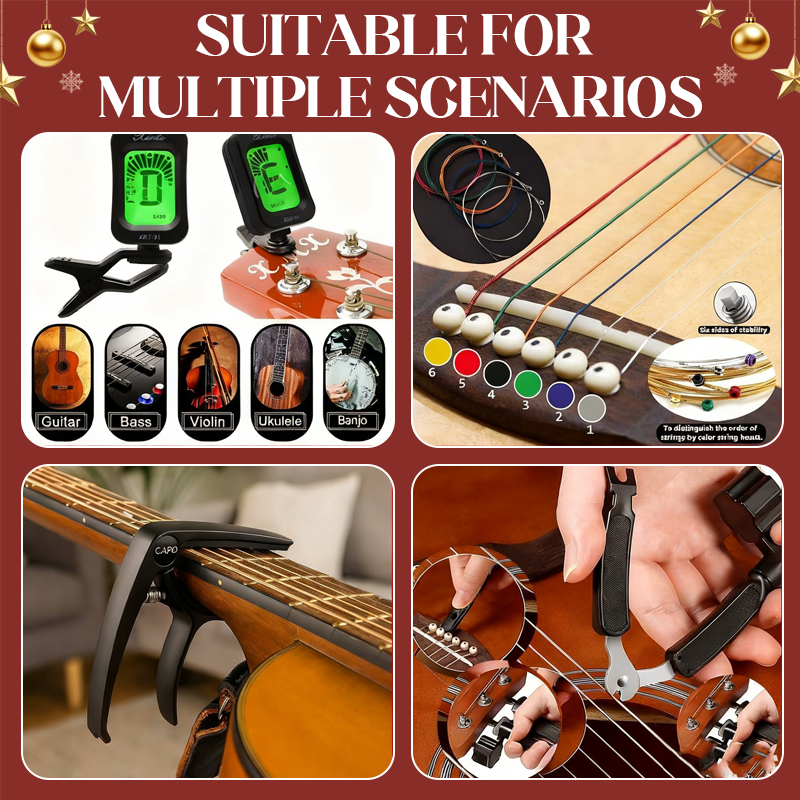 EVERYTHING IN ONE BOX - Get all the necessary gear without buying each item separately. This comprehensive kit includes tools for tuning, restringing, and playing, making it an incredibly convenient and valuable collection for any guitarist.