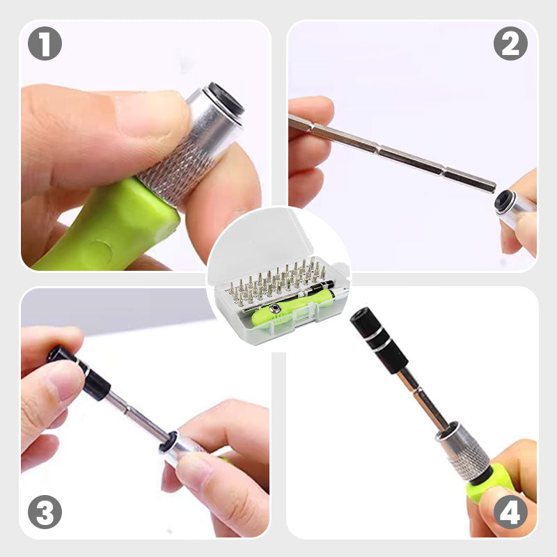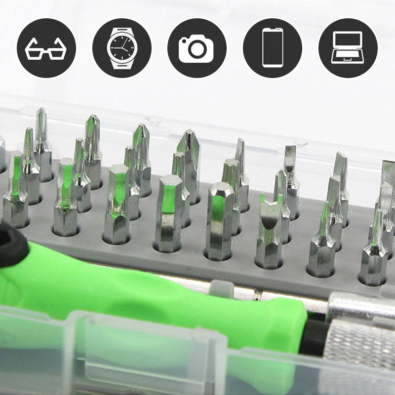COMPLETE SPECIFICATIONS: Includes 32 screwdriver bits covering a wide range of types, suitable for various tasks in different fields.
