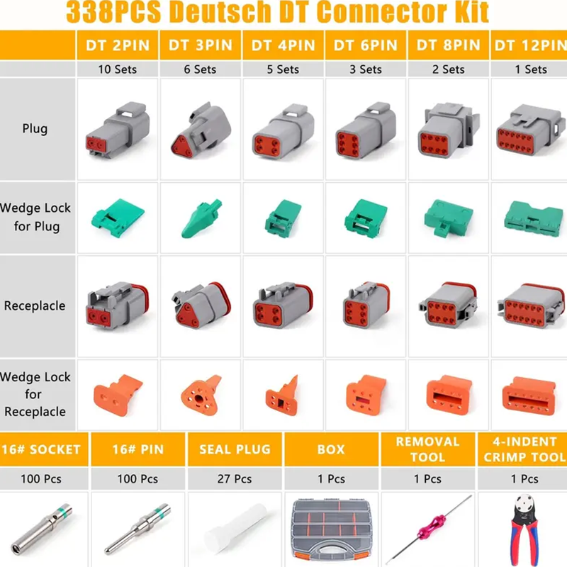 Package Includes: 1×338PCS Crimping Tool Kit for DT Connectors