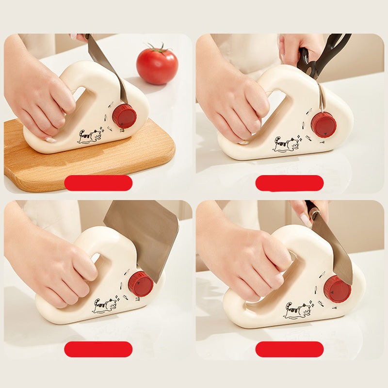 POCKET-SIZED VERSATILITY – Sharpens chef knives, pocket knives, and even scissors! The cute cartoon design looks at home in kitchens, RVs, or camping kits. Toss it in drawers without scratching other tools.