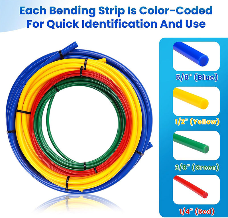 SMART COLOR CODING: Each bending strip is color-coded for quick identification and use. The vibrant colors - Red, Green, Yellow, Blue, Purple and Black - correspond to different pipe sizes, streamlining your work process and reducing errors during installation or repairs.