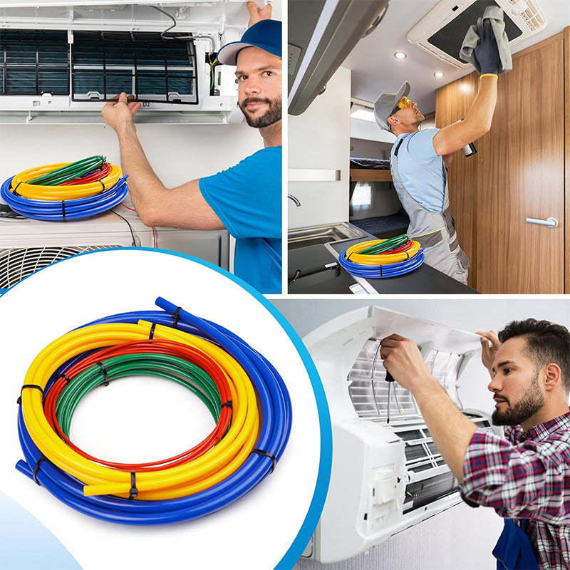 MULTI-SIZE COMPATIBILITY: This air conditioning copper pipe bender kit includes PE plastic strips for 1/4" (red), 3/8" (green), 1/2" (yellow), 5/8" (blue), 3/4" (purple), and 7/8" (black) pipes. Designed for precise and isolated bending of various pipe sizes, making it an essential tool for HVAC professionals and DIY enthusiasts.