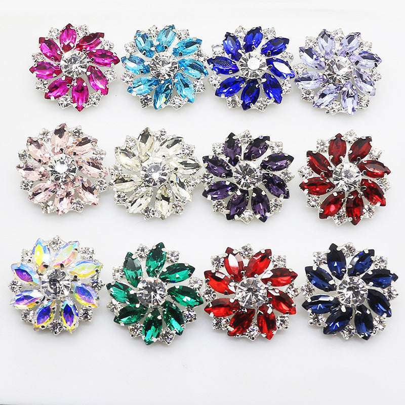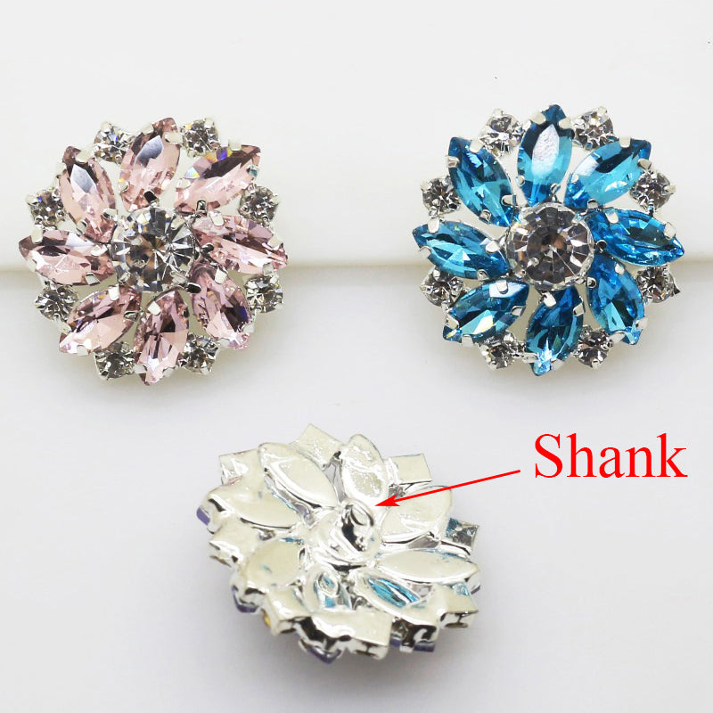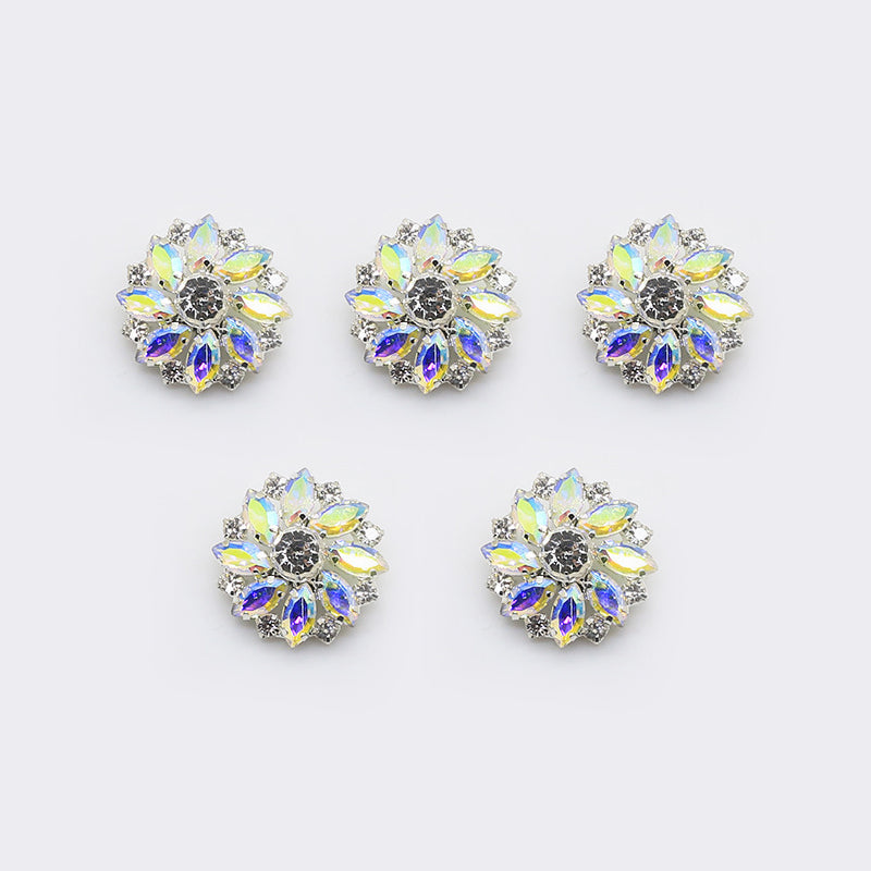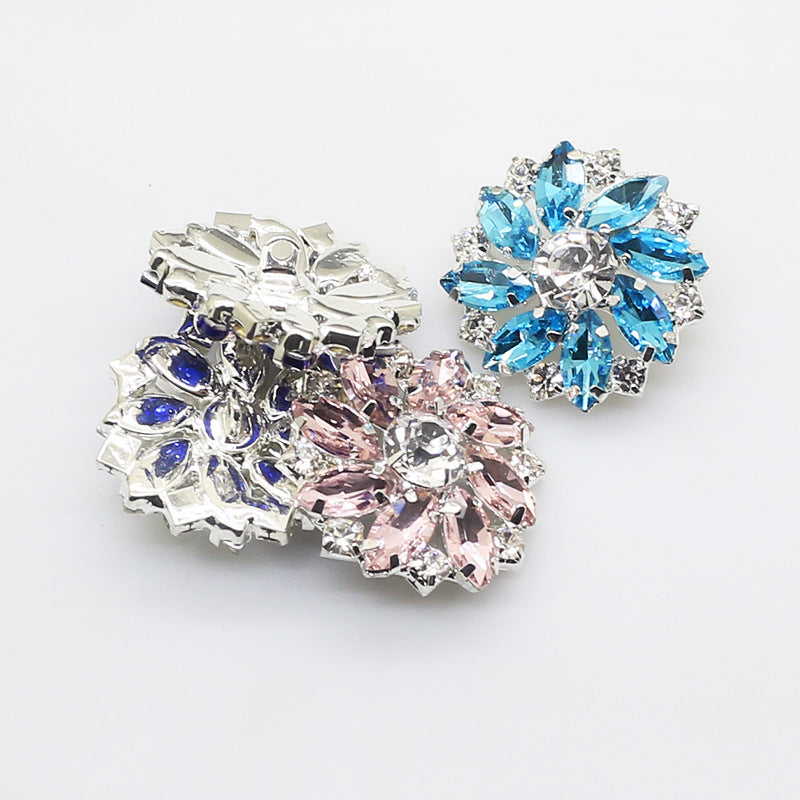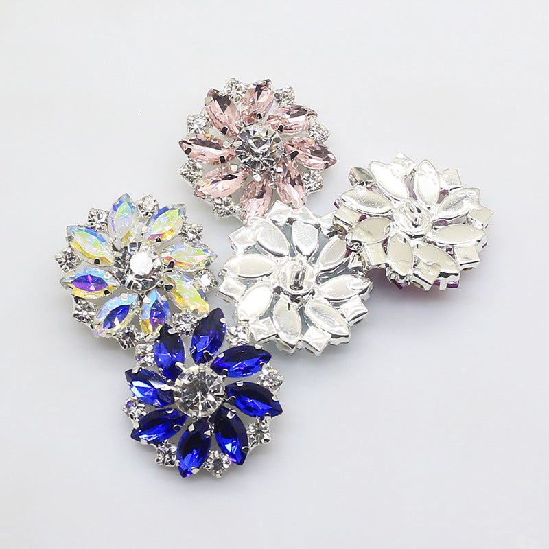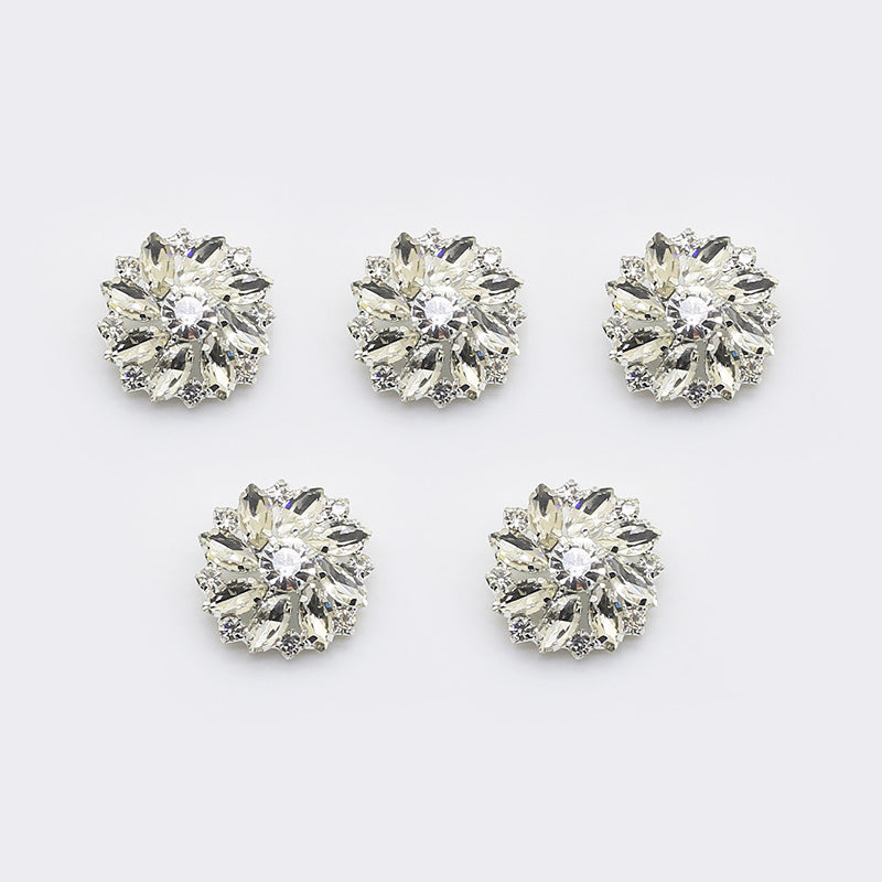 Package Includes: 5 * 28mm Flower Brass Rhinestone Shank Buttons