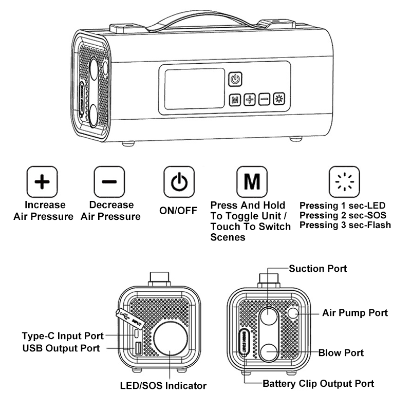 MULTI-FUNCTIONAL DESIGN: Beyond jump-starting, this device serves as an air pump, blower, emergency lighting, power bank, and compressor. Its versatility allows you to handle various automotive and daily needs, from inflating tires to charging devices, all in one compact unit.
