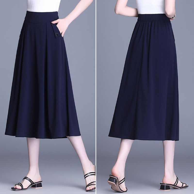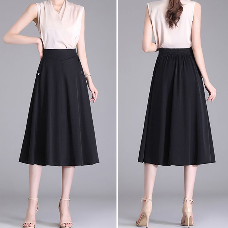 Women’s All-match Elastic Waist A-line Skirt with Pockets