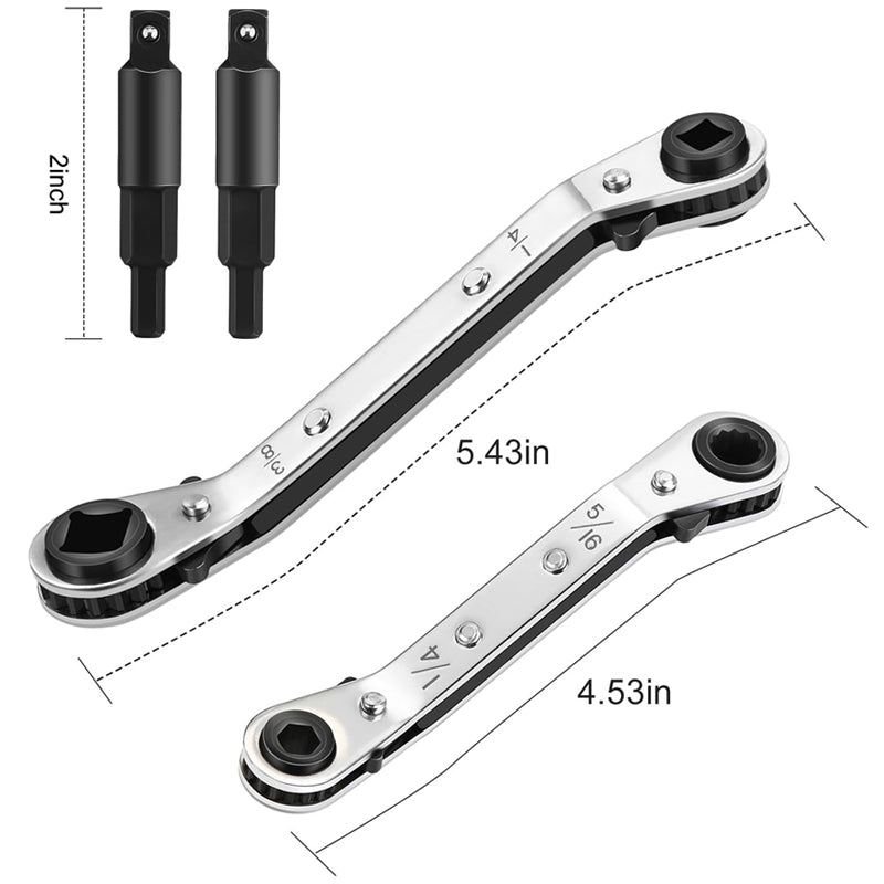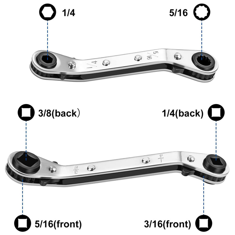COMPACT & SIMPLE DESIGN: This essential service wrench combines convenience with functionality in a compact package. Clearly marked with 4 standard sizes (1/4", 3/8", 3/16", 5/16"), it covers the most frequently needed measurements for air conditioning and refrigeration repairs. The intuitive design eliminates guesswork, saving valuable time during critical maintenance tasks.