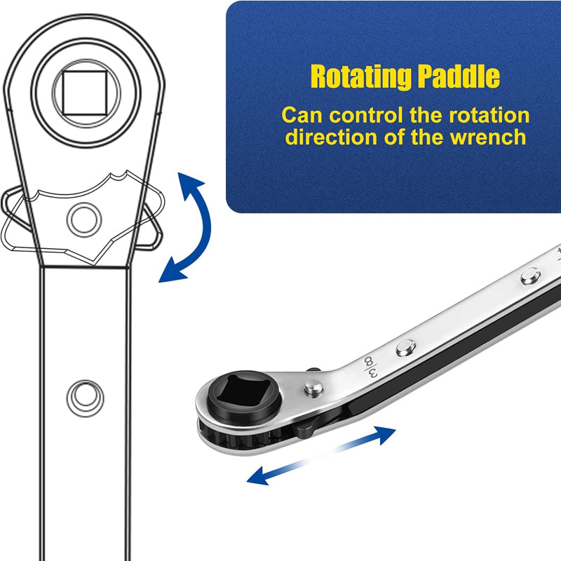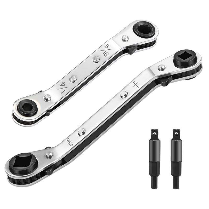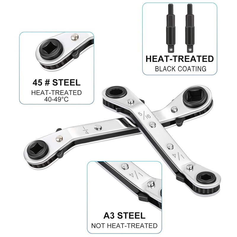 EFFICIENT REVERSIBLE RATCHET SYSTEM: Our double-ended wrench incorporates a quick-flip reversing lever for instant directional changes, dramatically improving workflow efficiency. The flat anti-slip design delivers maximum leverage with minimal effort, making it ideal for confined spaces and repetitive maintenance tasks in air conditioning and refrigeration systems.