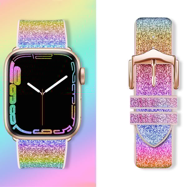 Premium Material- The inside of the strap is made of soft silicone, which is soft, breathable, and not allergic. The glitter is firmly built into the outside of the leather layer, don't worry about the glitter falling off.