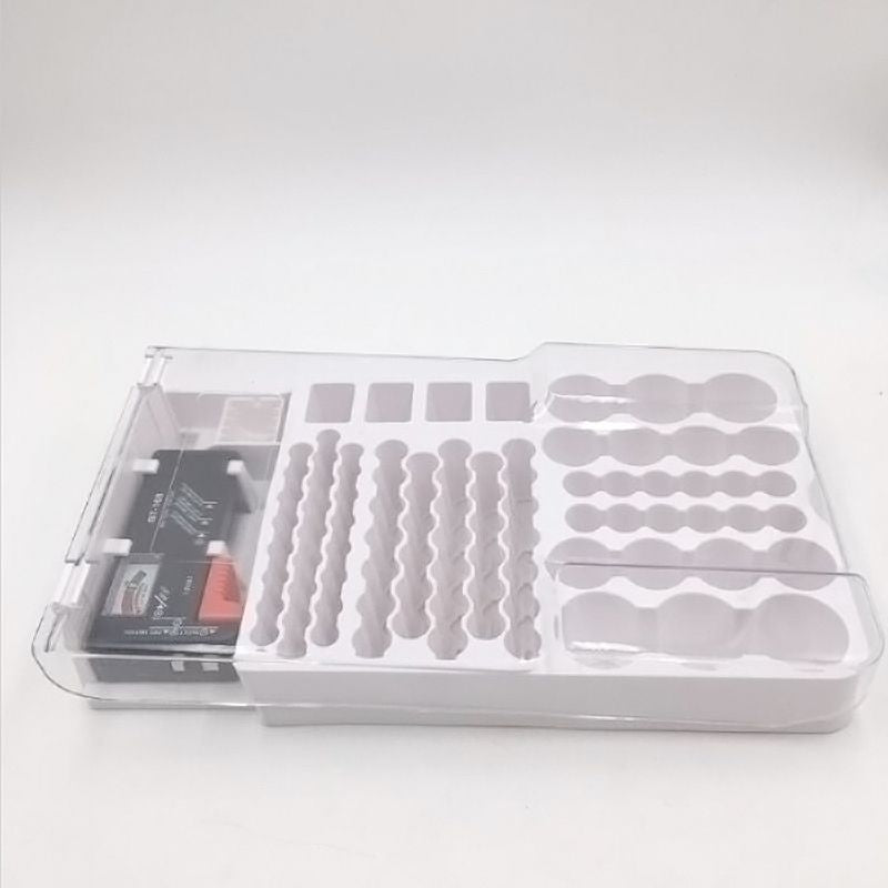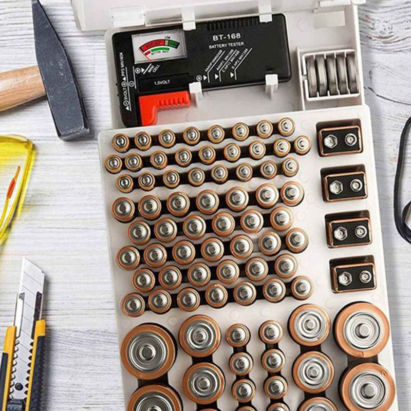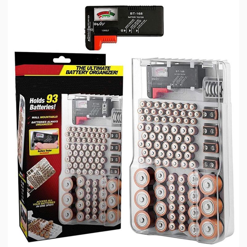It holds 93 batteries of various sizes and stores them neatly and tidily. The transparent lid allows you to easily access the batteries and find the one you need at a glance.