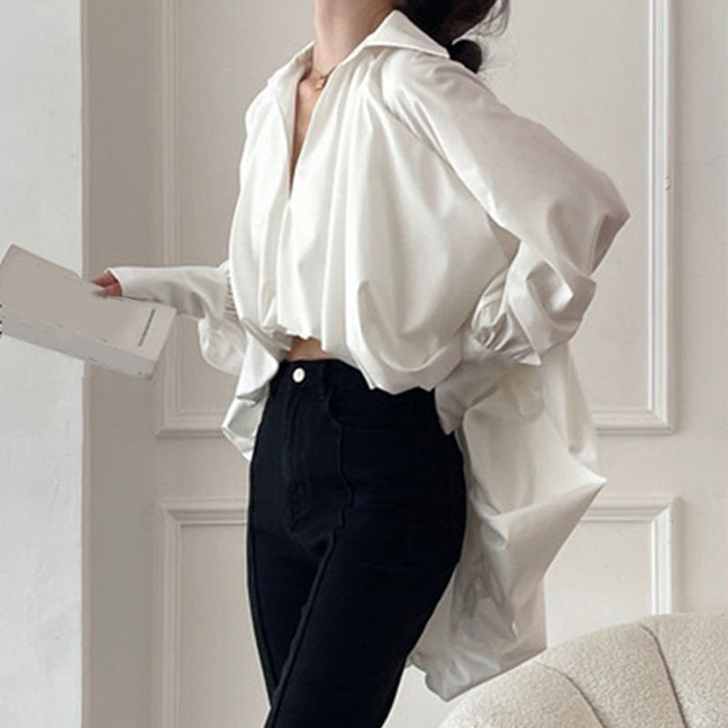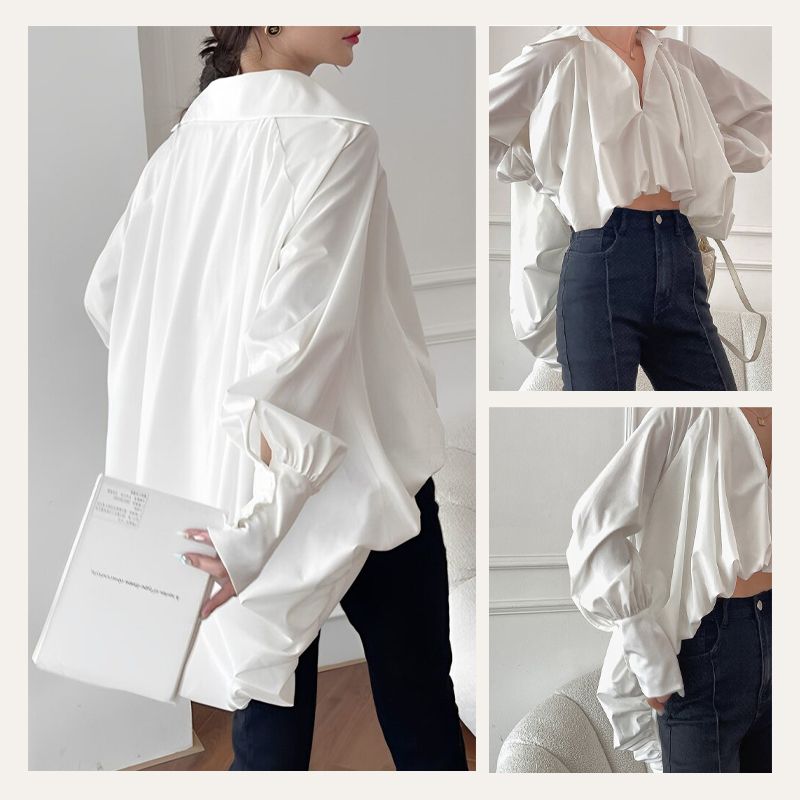 Vintage Courtly Style Lapel Lantern Sleeve Women's Waist-Baring Blouse