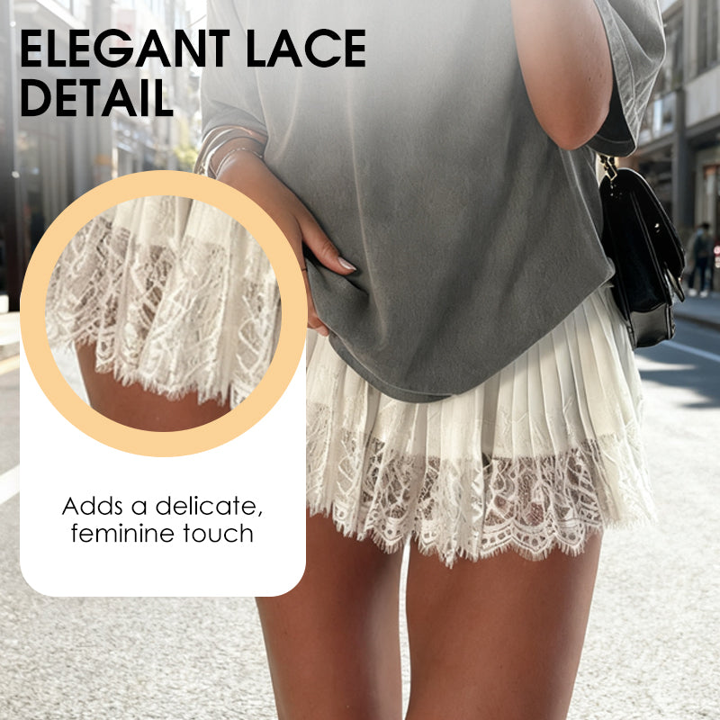 Chic Pleated Lace Trim Mini Skirt