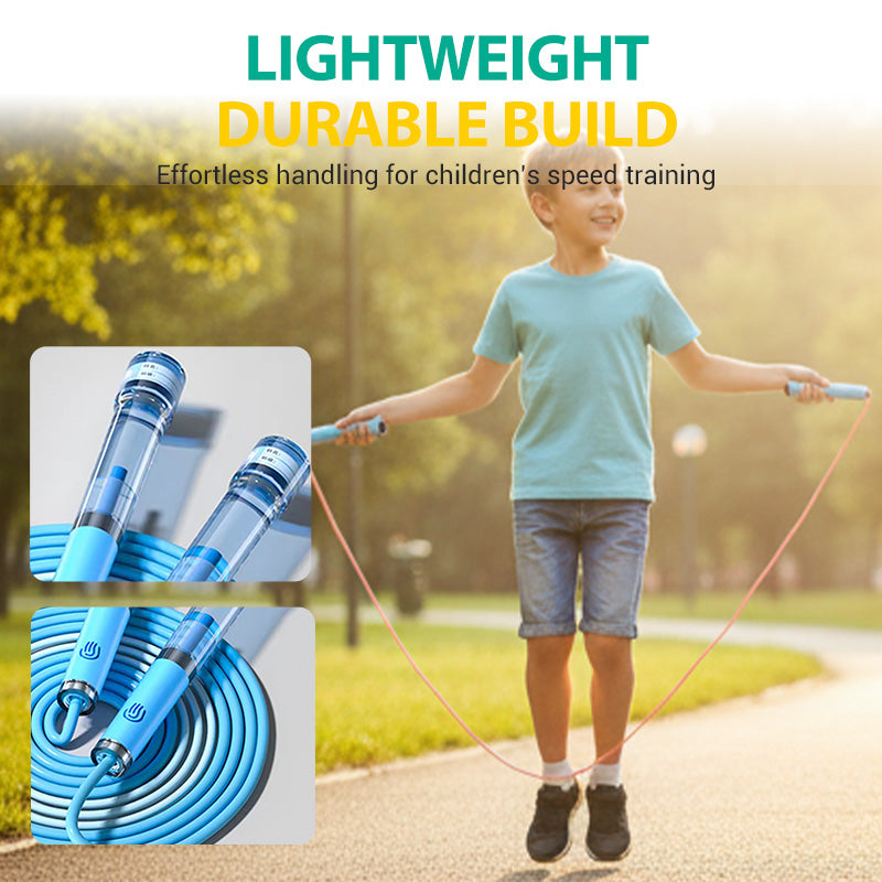 LIGHTWEIGHT AND DURABLE BUILD- Constructed from materials chosen for their lightweight properties without compromising durability. This design contributes to a reduced overall weight, making the jump rope easy to handle and maneuver for children during extended training sessions, supporting agility and endurance development.