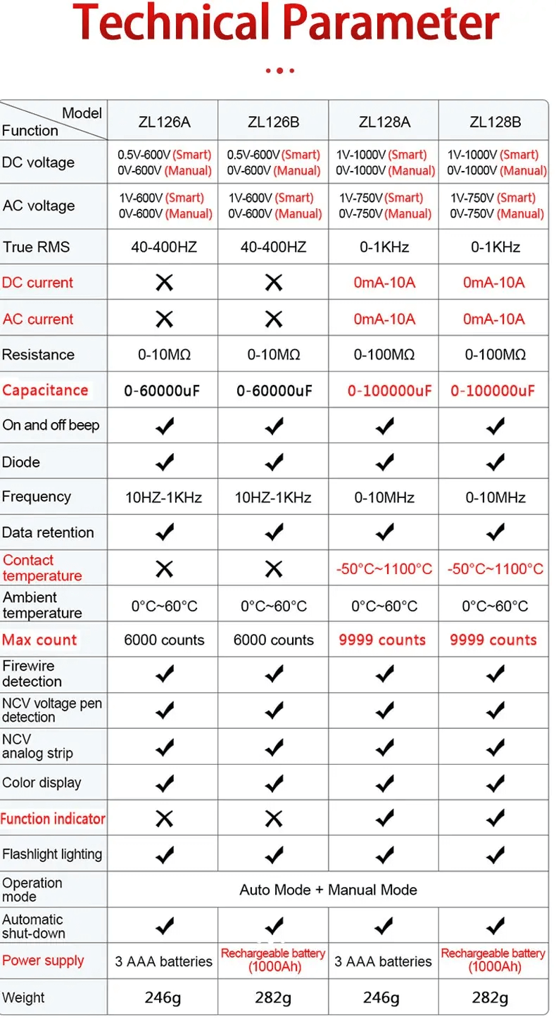 This digital high-precision multifunctional fully automatic intelligent multimeter is equipped with LED light, which can be used as a flashlight, making night work more convenient and practical.