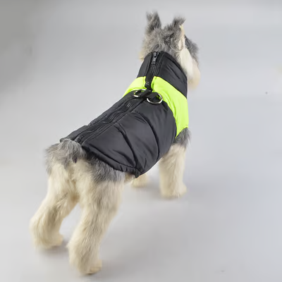 Windproof: The shrinkable high collar tape can effectively prevent wind. The elastic band of the abdomen is designed to fit the body better to keep warm. The reflective strip design on the back effectively ensures the safety of the dog walking at night.