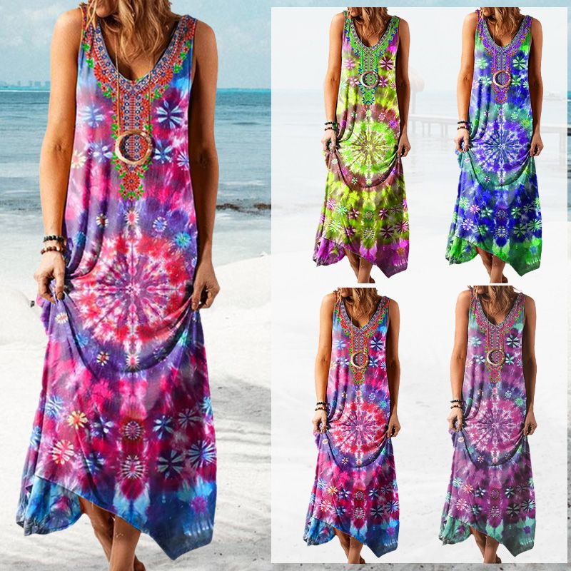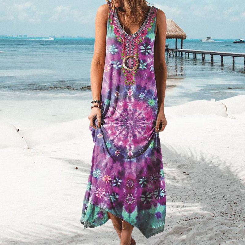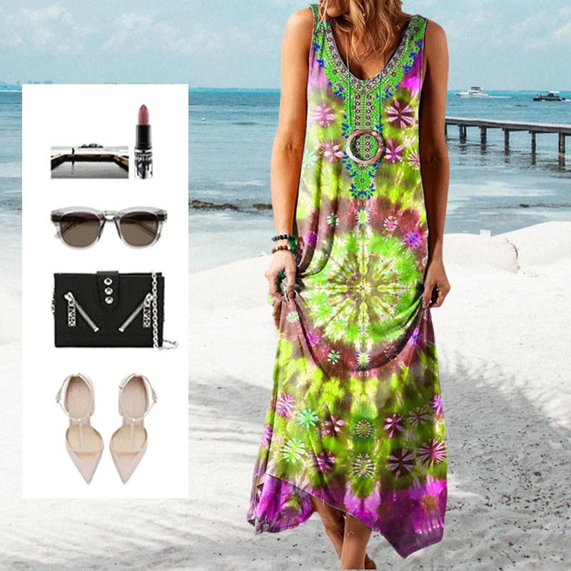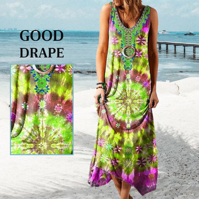 Women’s Ethnic Style Printed Loose Sleeveless Dress
