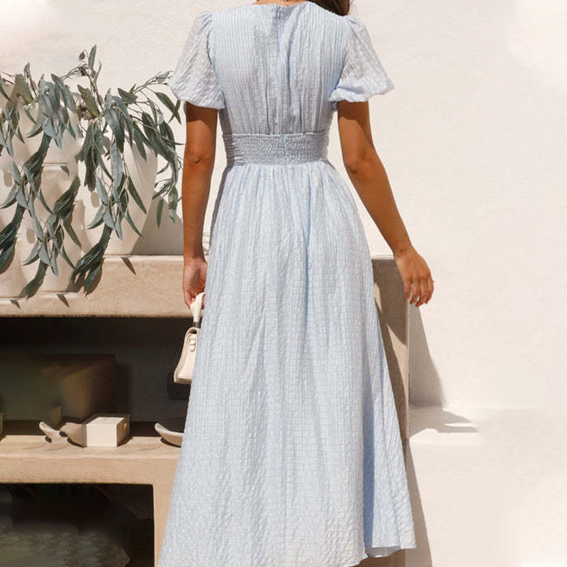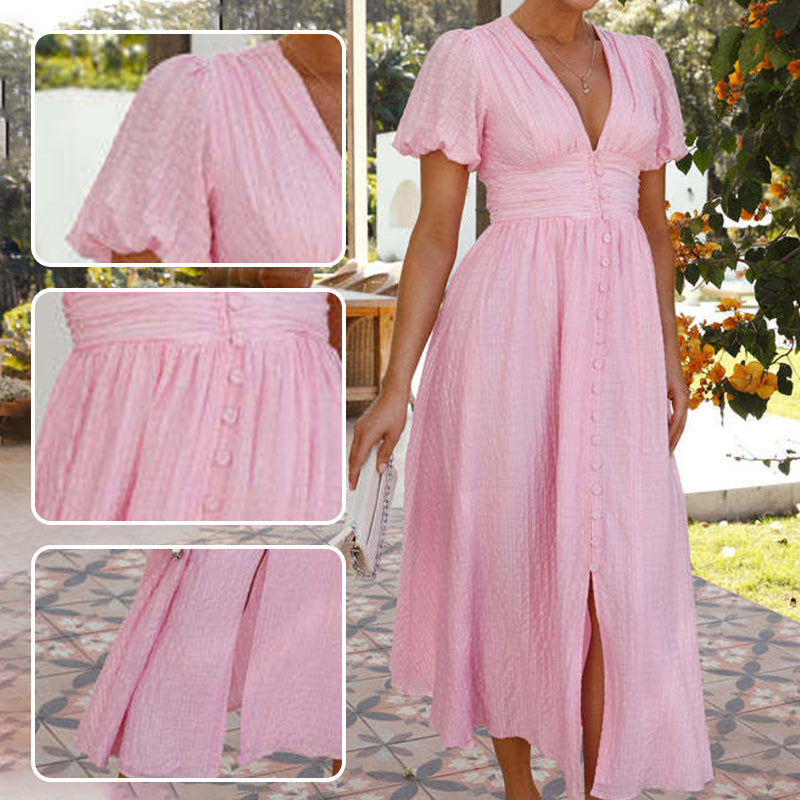 Förpackningen InnehÄller: 1*V-ringad KlÀnning med PuffÀrmar, Midjeknytning och Delad FÄll