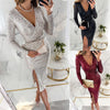 Elegant Wrap V-Neck Split Sequin Slim Dress