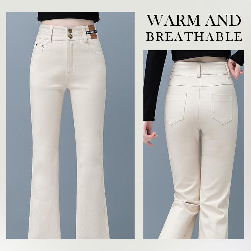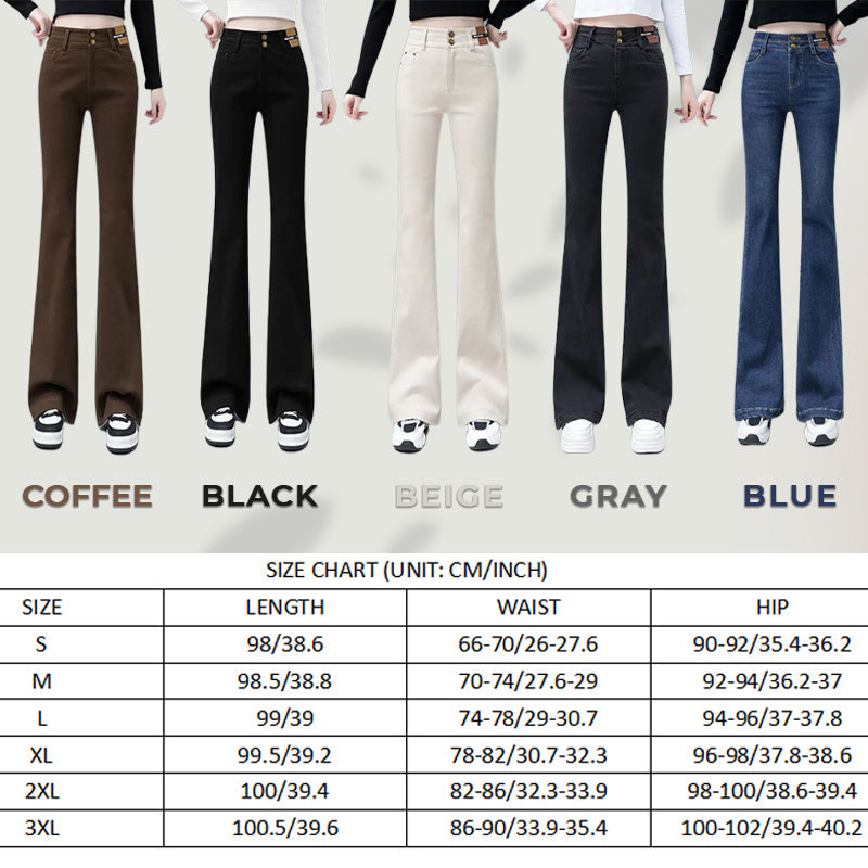 This women’ s jeans is flared design, it is fashionable, and it is fleece and thickened, it can make you both warm and stylish in autumn and winter.
