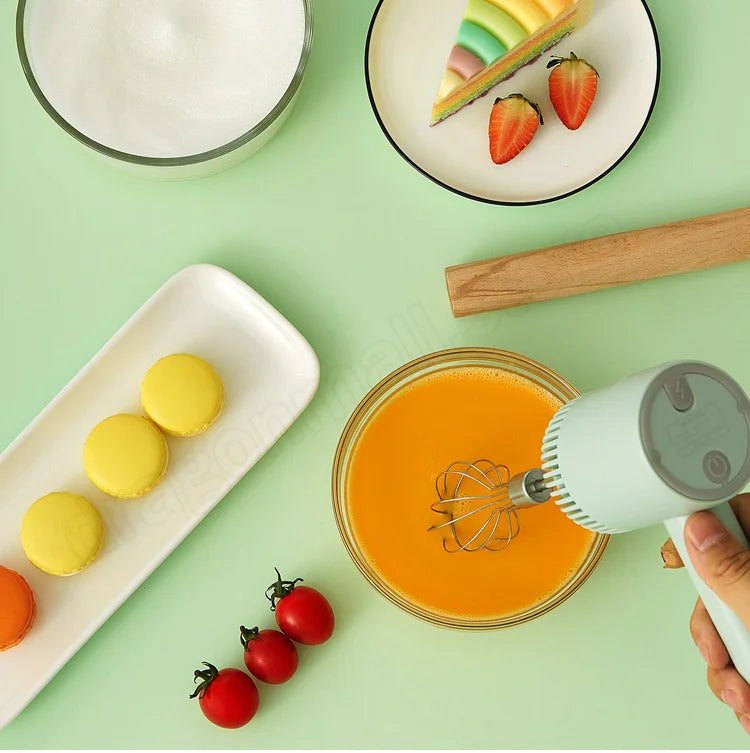 The Wireless Mini Electric Whisk is designed with convenience in mind. It features a rechargeable battery, allowing you to take it with you anywhere without needing to plug it in. The whisk also comes with a USB cable for easy charging.