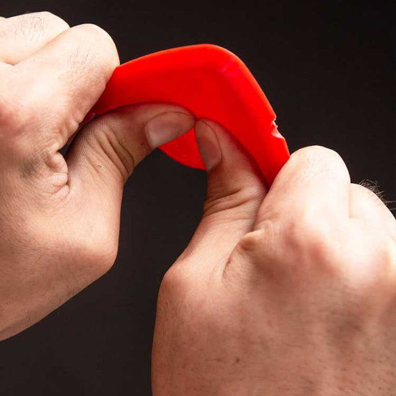 It is made from a durable plastic material and has 4 curved edges to help remove stubborn glue residue, without damaging the glass.