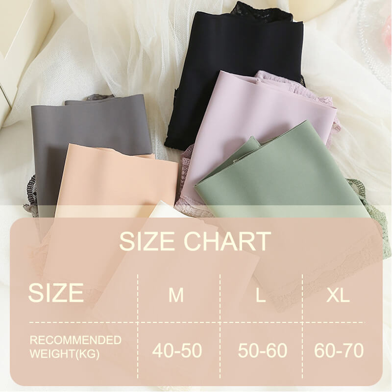 The panties are made of ice silk and the crotch is made of pure cotton ,which gives you a fresh and healthy experience.