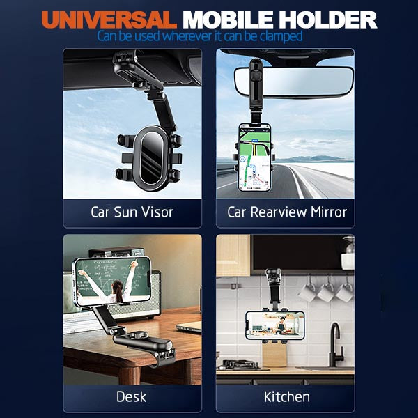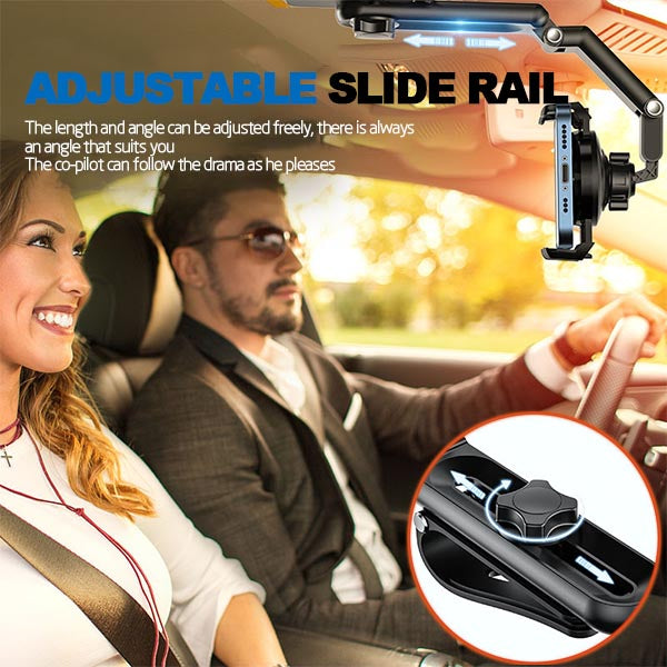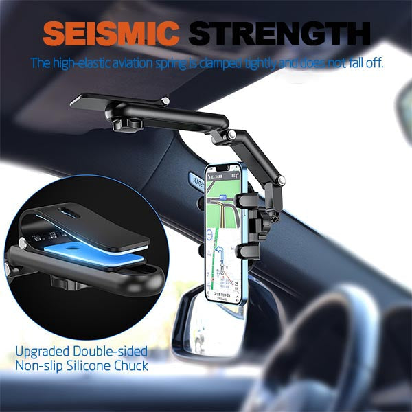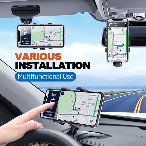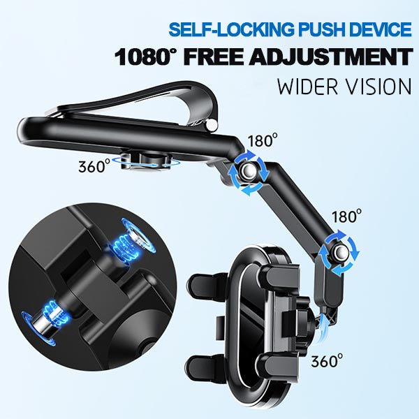 - ?1080 Degrees Rotation car cell phone holder : Our cell phone holder designed with 360 degrees roatatable ball jiont for optimalxiewing angle and 720 degrees adjustable telescopic arm. This carcell phone holder canbe adjusted freely according to the front passenger seat, in oder to make sure driving safety, stability and aviod obsttructing the sight.
