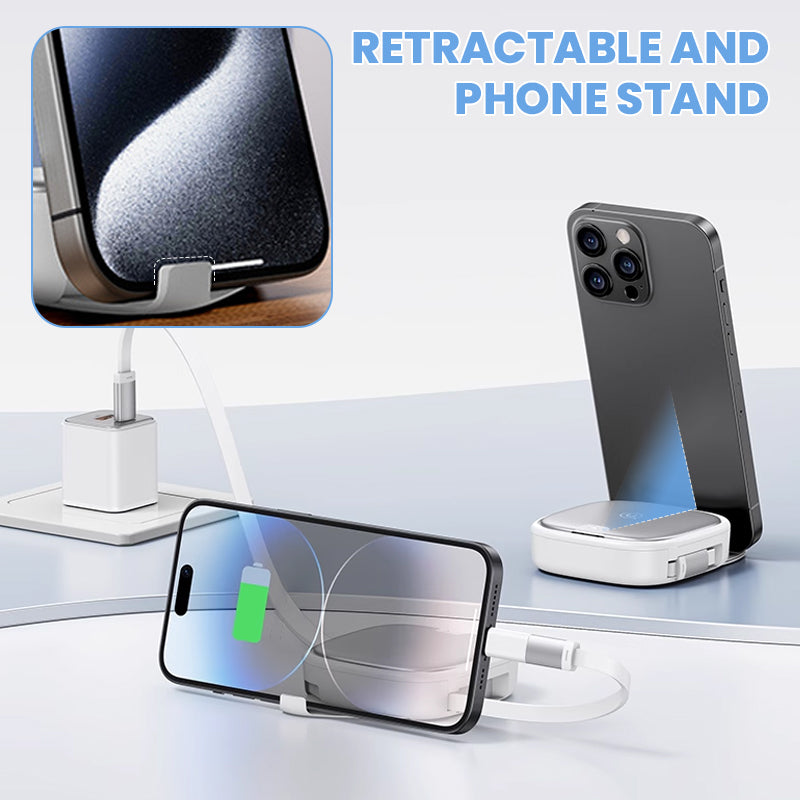 RETRACTABLE AND PHONE STAND: The retractable cable features an integrated phone stand, allowing you to watch videos hands-free while charging. The stand is built into the back of the charging box for added convenience.