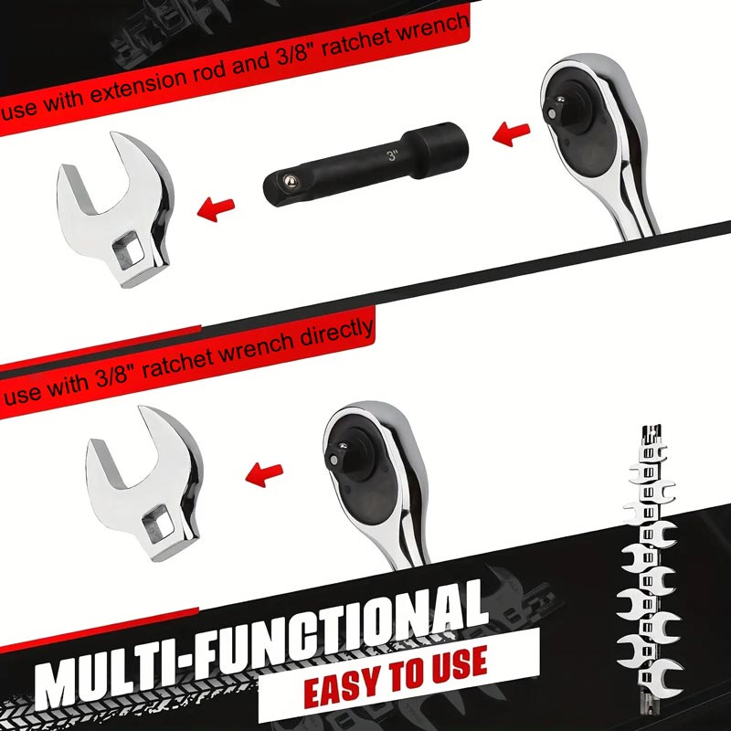 Tackle your projects efficiently with our 8 PCS Interchangeable Metric Wrench Set, specially designed for use with 3/8" ratchet and torque wrenches. Perfect for navigating narrow spaces that ordinary wrenches can't reach, this set is a must-have for any toolbox.