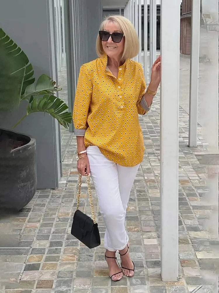🌈【🔥Best Sellers】 3/4 sleeve shirt with printed stand-up collar