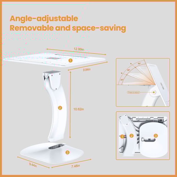 Dimensions and warranty: panel: 12.99 x 9.84 inches, height: 10.62 inches, weight: 1.57 pounds, base. 9.44 x 7.48 inches. Xuenair guarantees the quality of the home office laptop desk, if you are not satisfied, please feel free to contact us.