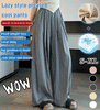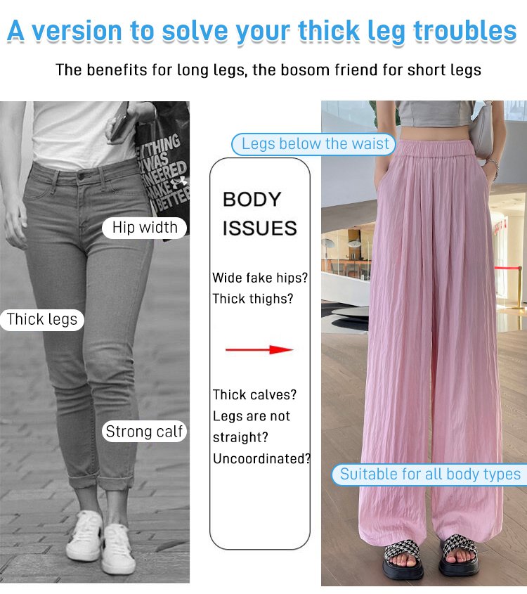 Elastic waist and wide-leg trousers to modify the figure and highlight the long legs