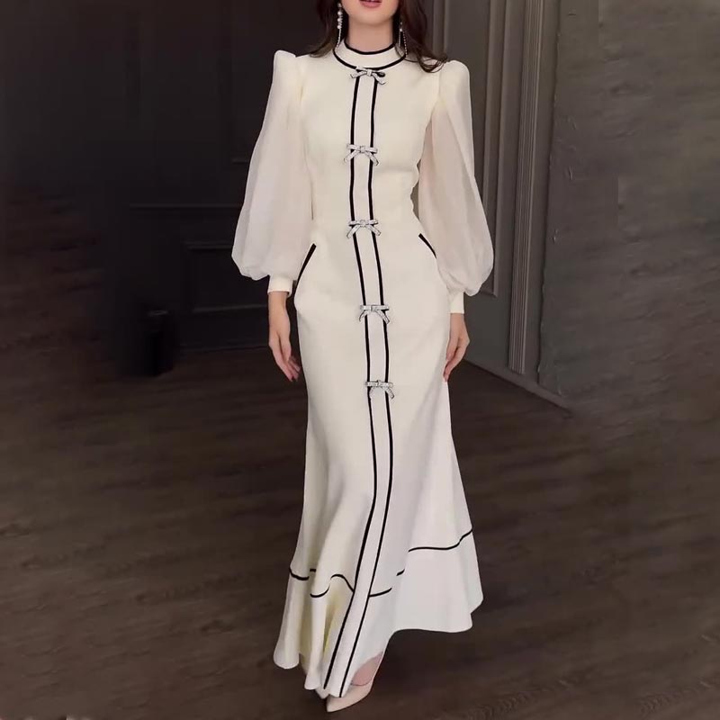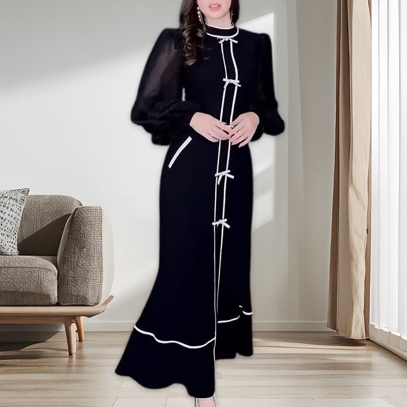 FLATTERING DESIGN: This stunning maxi dress features a half-turtleneck and a chic front bow that accentuates the waist, giving you a slimmer and more defined silhouette. Perfect for casual outings and formal occasions where you want to look your best!
