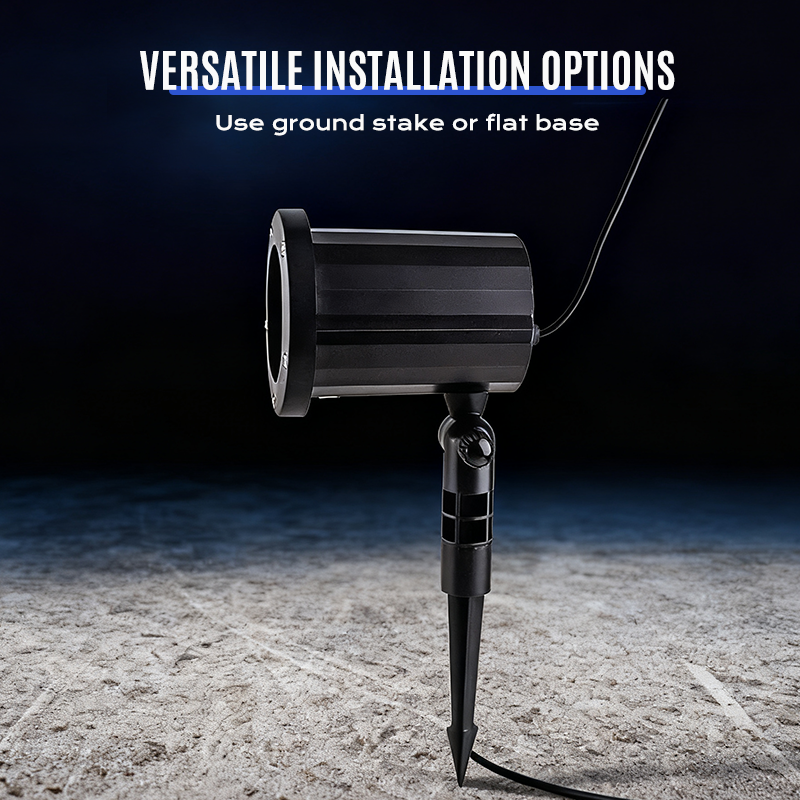 DUAL MOUNTING OPTIONS - Install the projector anywhere you need. Use the included ground stake to place it securely in your lawn or garden, or use the round base for stable placement on flat surfaces.