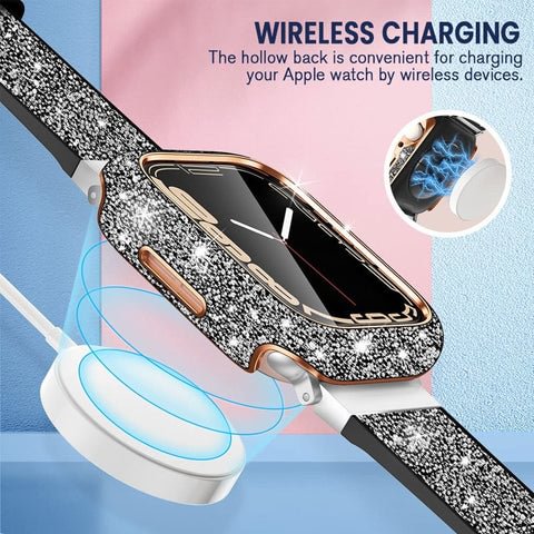 - Bling screen protector is made of hard pc. No peculiar smell, no deformation, make your watch stylish and durable. Easy to install, no need to remove the strap, you can put on the case to charge the watch.