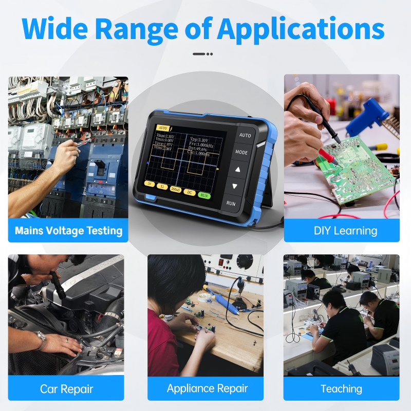 COMPACT AND LIGHTWEIGHT: This fully assembled, pocket-sized oscilloscope is easy to carry anywhere. It is the perfect on-the-go diagnostic tool for maintenance professionals, students, and hobbyists who need reliable measurements in the field.