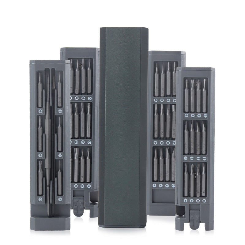 This screwdriver set has 28* conventional and precision bits, 1* screwdriver, 1* tweezers, 1* pry bar. The upgraded extended drill bit is 10mm longer than the ordinary one, which is convenient for disassembly and assembly of deep screws.