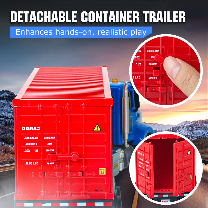 DETACHABLE TRAILER - The container trailer can be manually detached from the truck cab. This interactive feature allows children to practice fine motor skills and learn about truck mechanics, adding an extra layer of realistic, hands-on play.