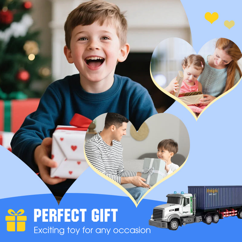 REALISTIC LIGHTS AND SOUNDS - Features authentic engine sounds, horns, and bright LED headlights. This immersive experience stimulates your child's senses, making playtime more engaging and bringing the excitement of a real-life transport truck to their fingertips.