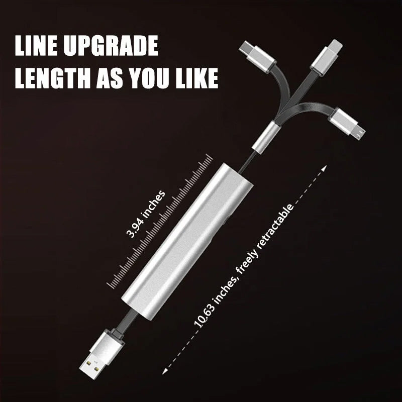 UNIVERSAL COMPATIBILITY: This 3 in 1 multi-functional retractable charging cable is designed to work seamlessly with various devices. It supports charging and data transfer for devices with Lightning, Micro, and Type-C ports.