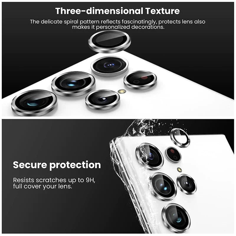 - 3D TEXTURE - Delicate and precise spiral pattern creates captivating reflections and unrivaled lustre in any light, protecting your lenses while making them a personal touch. Multi-color lens protector rings to match your style.