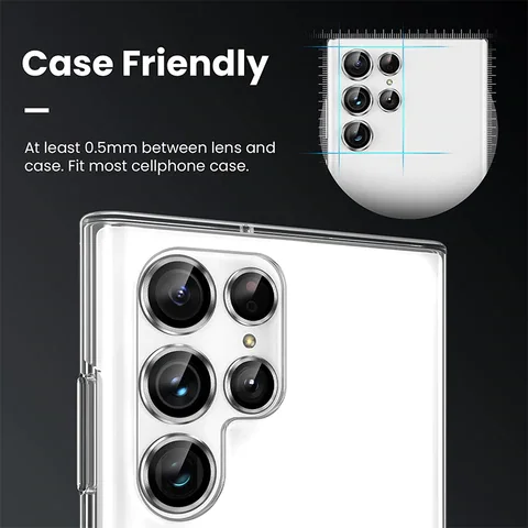 - Total Protection - Aviation Aluminum Metal Ring and 9H Tempered Glass Single Camera Protector protect your Galaxy S22/23 camera lens from damage and scratches. The seal is designed to keep out dust and water. Safeguarding against shocks, drops or massive impacts to your camera keeps you calm.