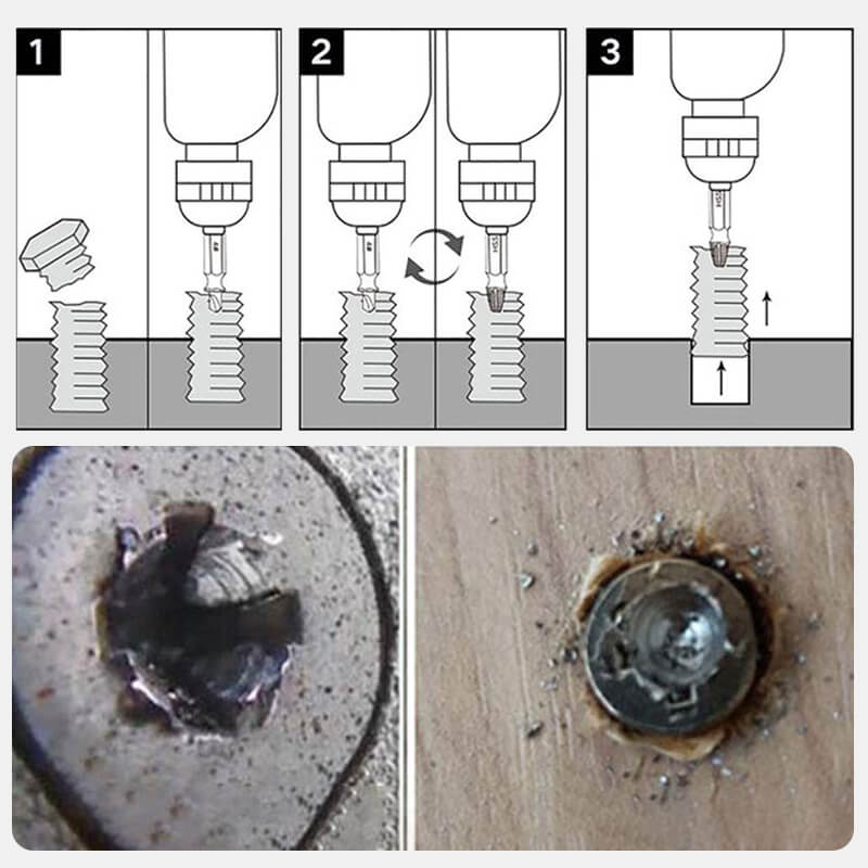 Remove even the most stubborn stripped, damaged, embedded, rusted, and painted-over screws and bolts. Suitable for allen bolts, machine screws, lag bolts, wood screws, hex bolts, sheet metal screws, and other screws.