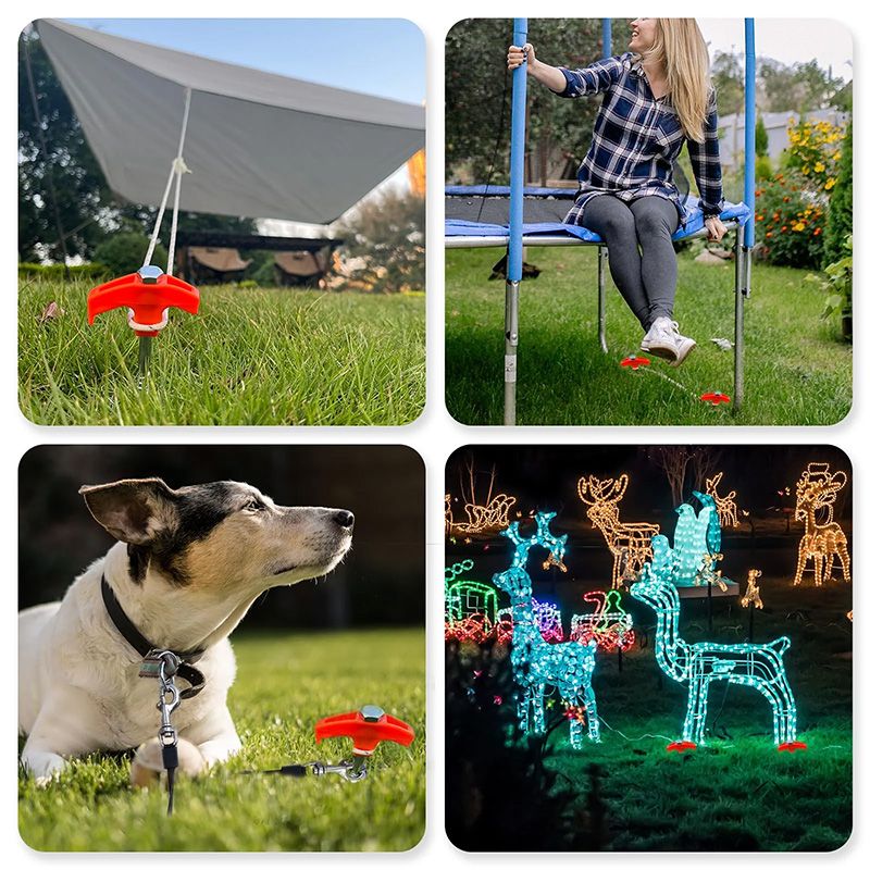 [MULTI-PURPOSE]: Whether you're looking to secure your tent, awning, pop-up, canopy, gazebo, or even to secure your dog leash, Christmas decorations, new years decorations, Drillable Tent Stakes have you covered.