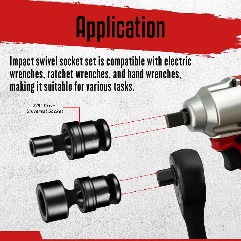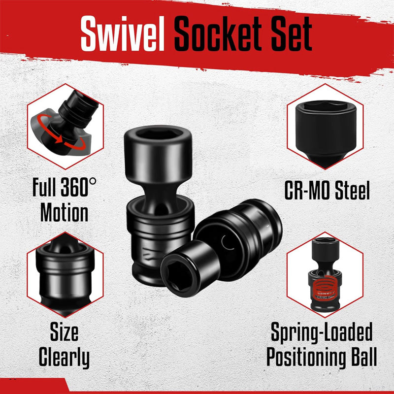 DURABLE HIGH-QUALITY MATERIAL: Crafted from high hardness chrome molybdenum steel, this impact swivel socket set is coated with black manganese phosphate to resist corrosion, providing long-lasting strength and reliability for all your projects.