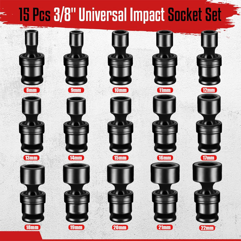 15pcs 3/8" Shallow Impact Universal Joint Socket Set
